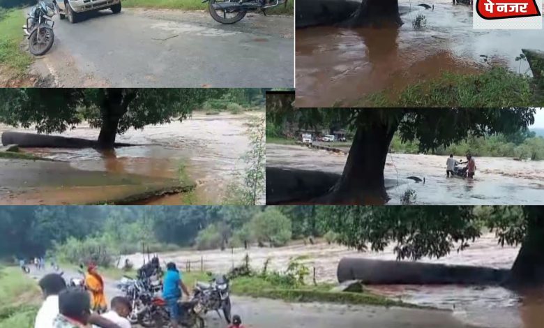 स्लग – पानी पानी हुआ गांव क्षेत्र,रपटा पुल के ऊपर पानी बहने से मार्ग हुआ अवरुद्ध…….